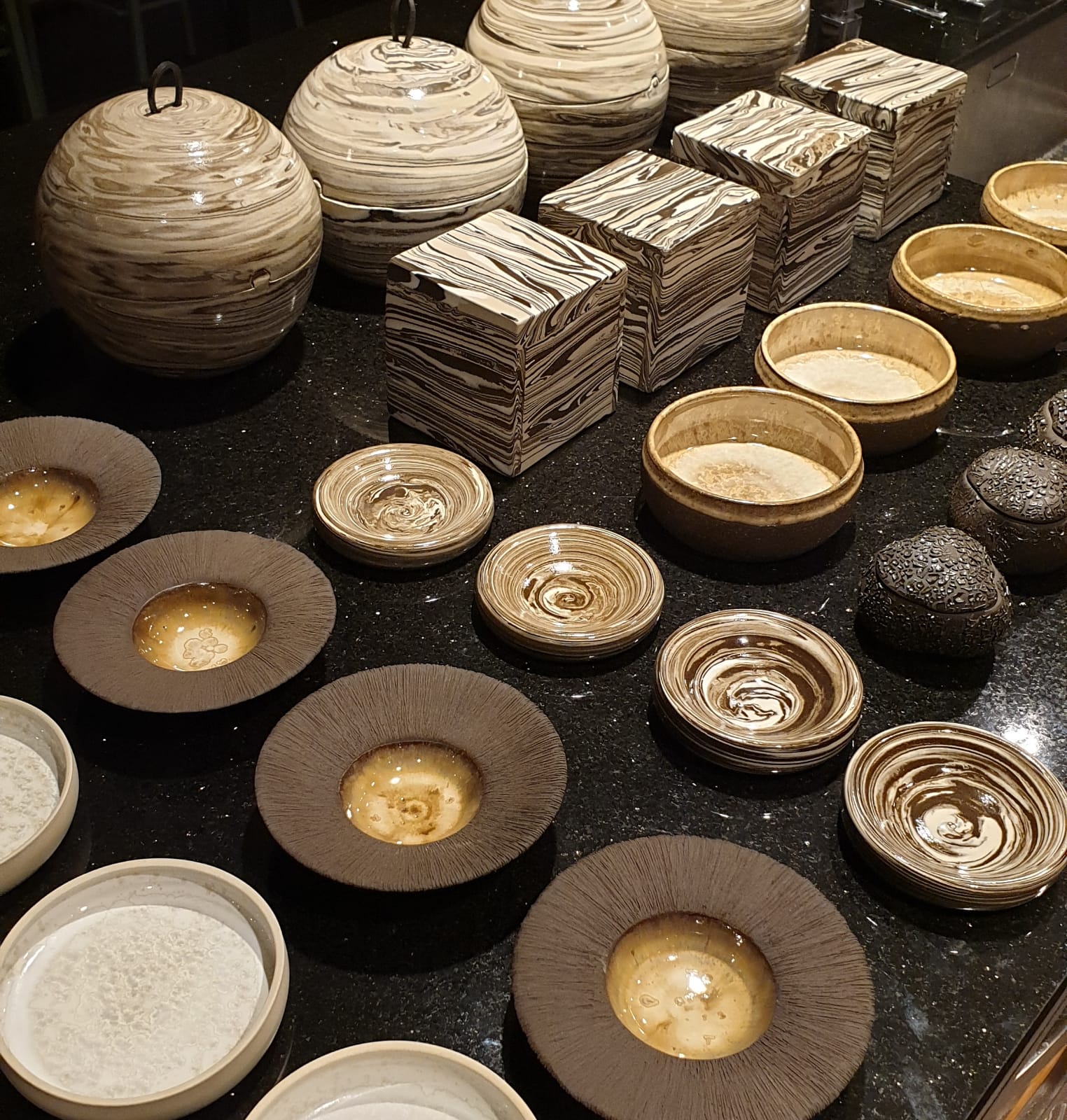 Réalisation de pièces utilitaires, art de la table, objets décoratifs en grès ou porcelaine.